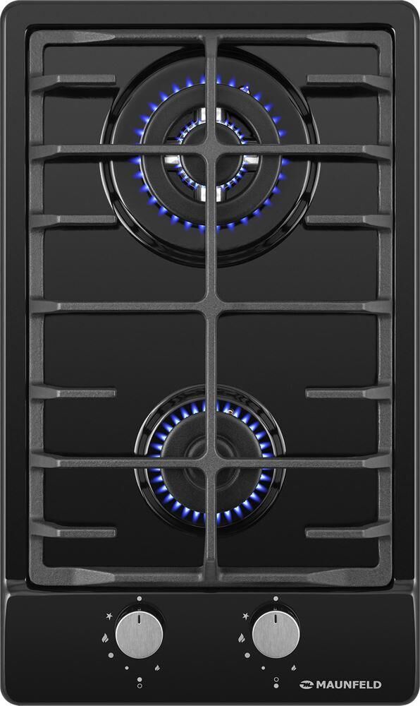 MAUNFELD Газовая варочная панель EGHE.32.3EBG, 2 конфорки, эмалированная сталь, черный