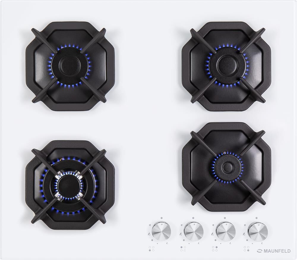 MAUNFELD Газовая варочная панель EGHG.64.23CW/G, 4 конфорки, закаленное стекло, белый