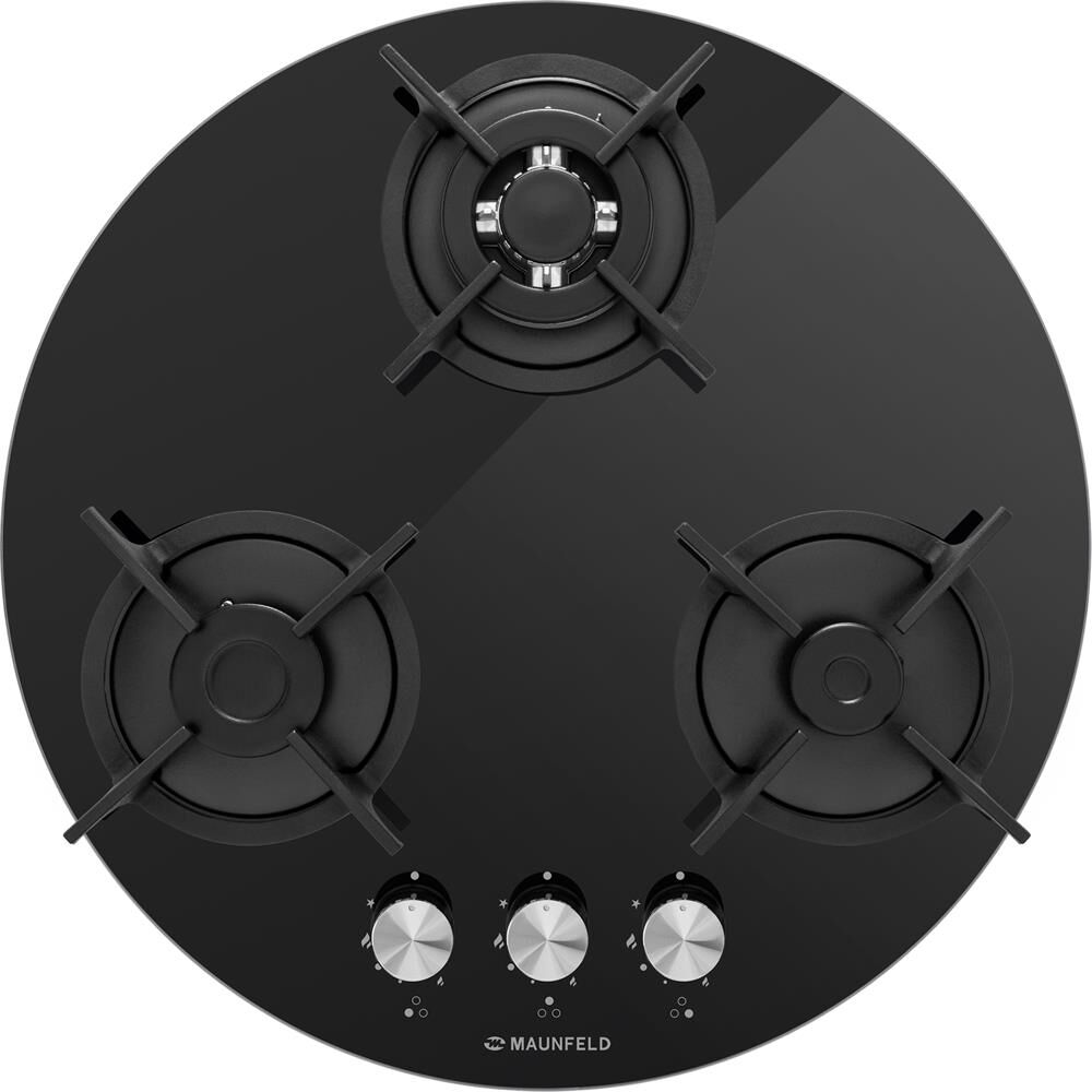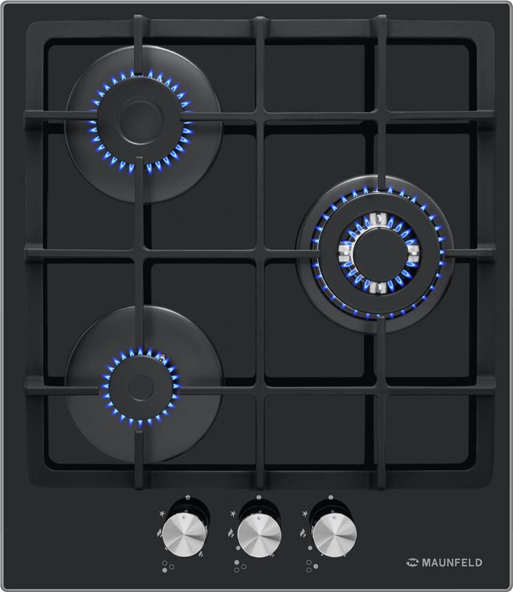 MAUNFELD Газовая варочная панель EGHG.43.33CBG, 3 конфорки, закаленное стекло, черный