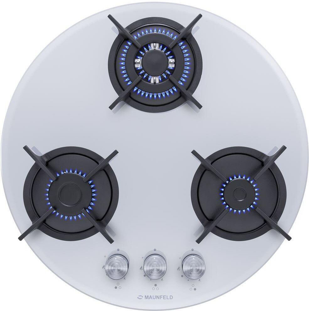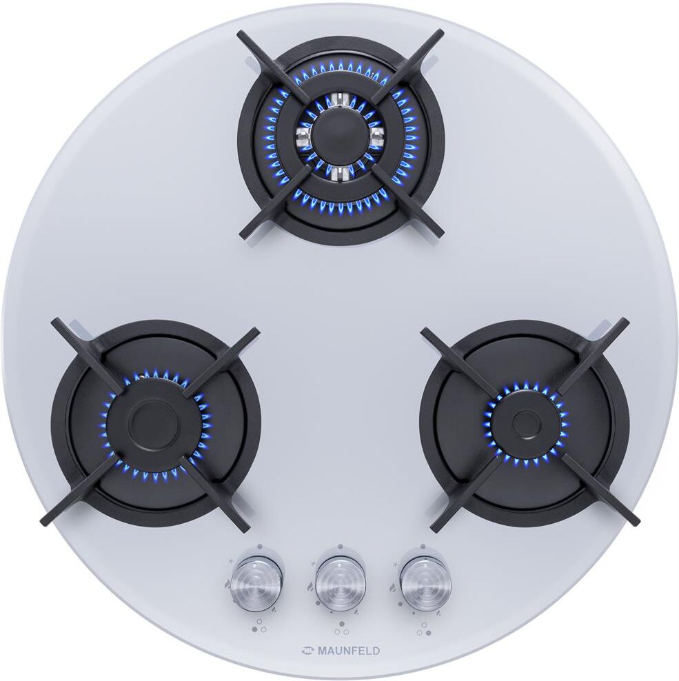 MAUNFELD Газовая варочная панель EGHG.43.23CWG, 3 конфорки, закаленное стекло, белый