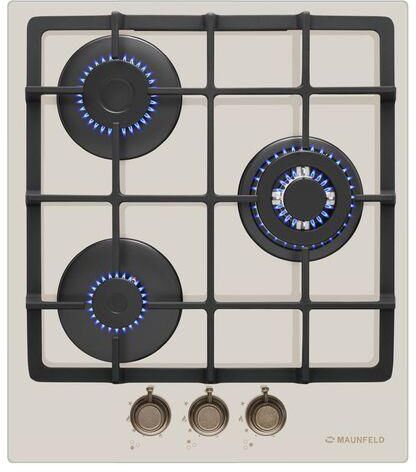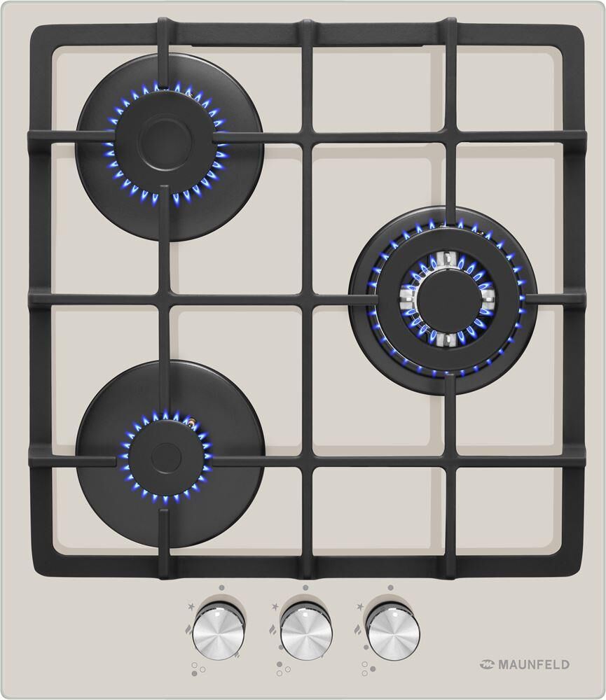 MAUNFELD Газовая варочная панель EGHG.43.33CBG.R/G, 3 конфорки, закаленное стекло, бежевый