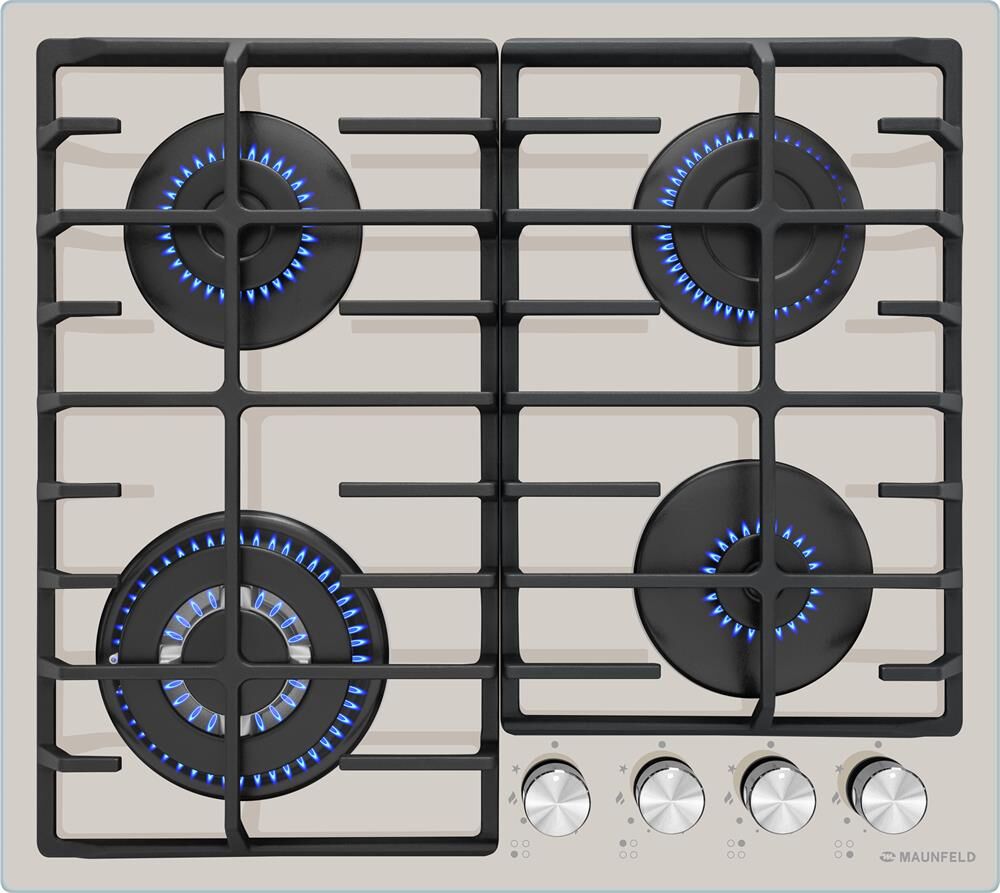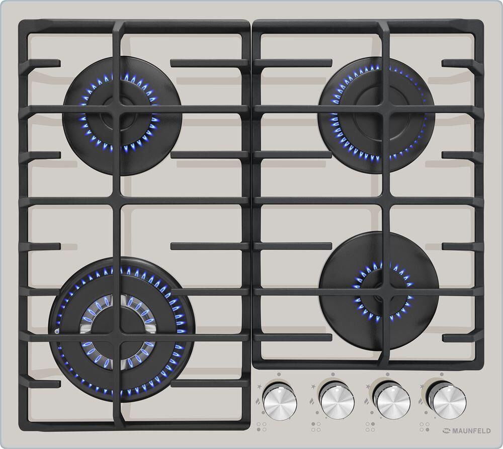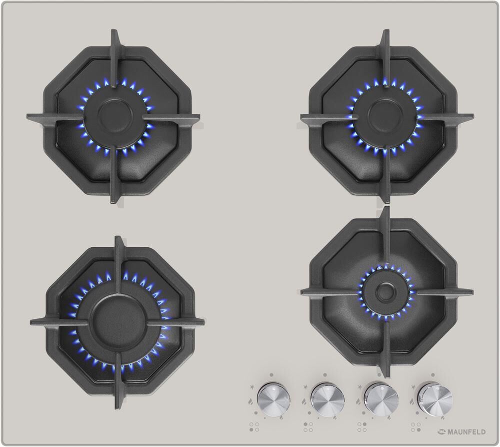 MAUNFELD Газовая варочная панель EGHG.64.6CBG/G, 4 конфорки, закаленное стекло, бежевый