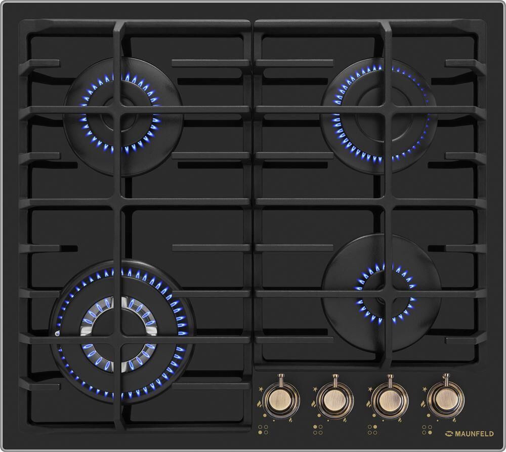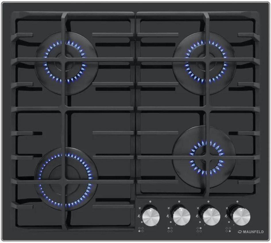 MAUNFELD Газовая варочная панель EGHG.64.6CB/G, 4 конфорки, закаленное стекло, черный