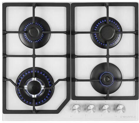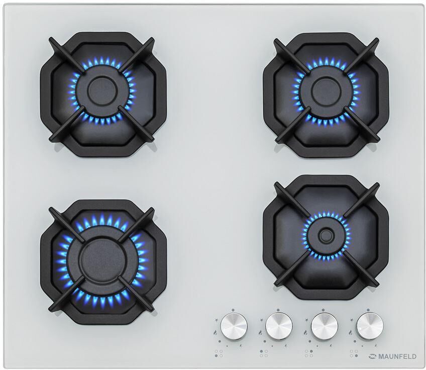 MAUNFELD Газовая варочная панель EGHG.64.2CW/G, 4 конфорки, закаленное стекло, белый