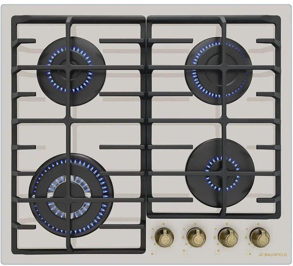 MAUNFELD Газовая варочная панель EGHG.64.2CBGG, 4 конфорки, закаленное стекло, бежевый