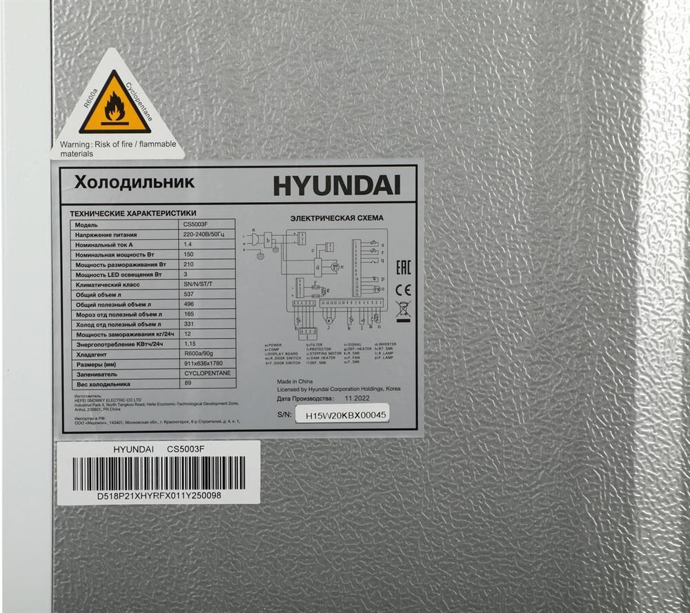 HYUNDAI CS4505F 436л нержавеющая/сталь