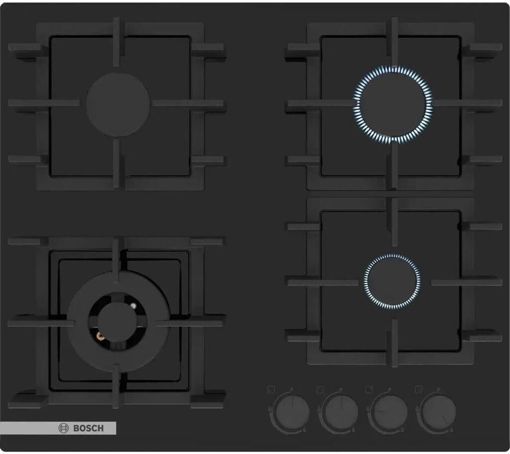 BOSCH Газовая варочная панель PBP6C6K80Q, 4 конфорки, эмалированная сталь, черный
