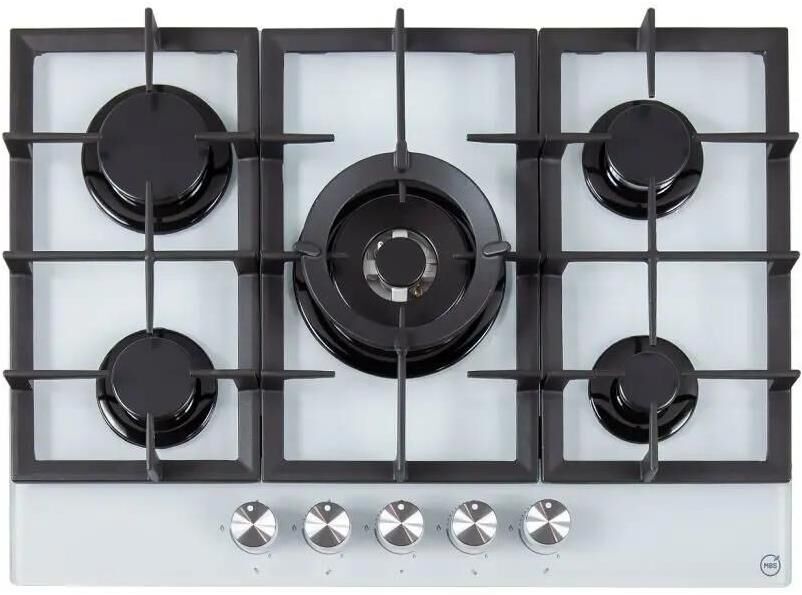 MBS Газовая варочная панель PG-801WH, 5 конфорок, закаленное стекло, белый