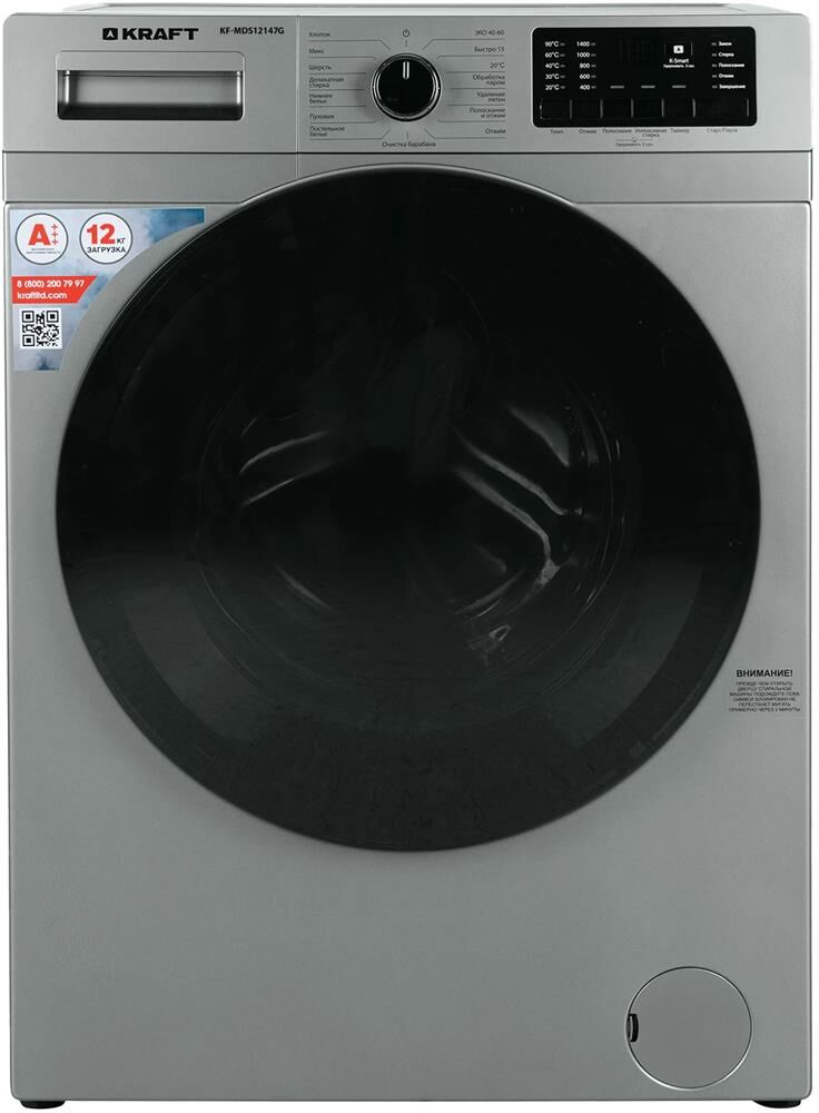 KRAFT Стиральная машина KF-MDDS12125W, с фронтальной загрузкой, с паром, 12кг, 1200об/мин, с сушкой