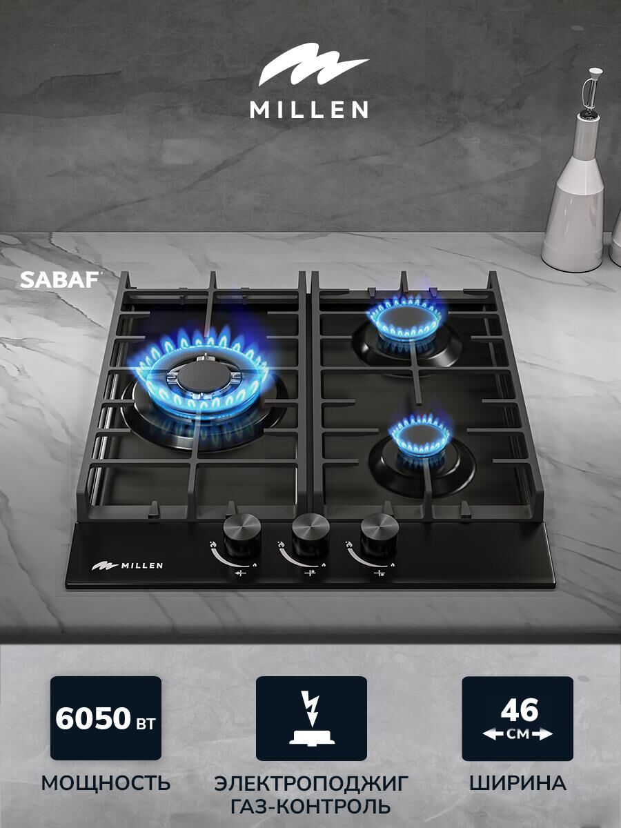 MIDEA Газовая варочная панель MG693TGB, 4 конфорки, закаленное стекло, черный