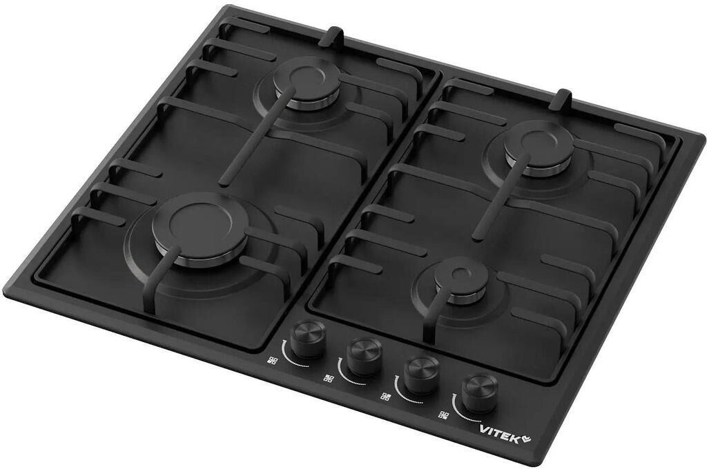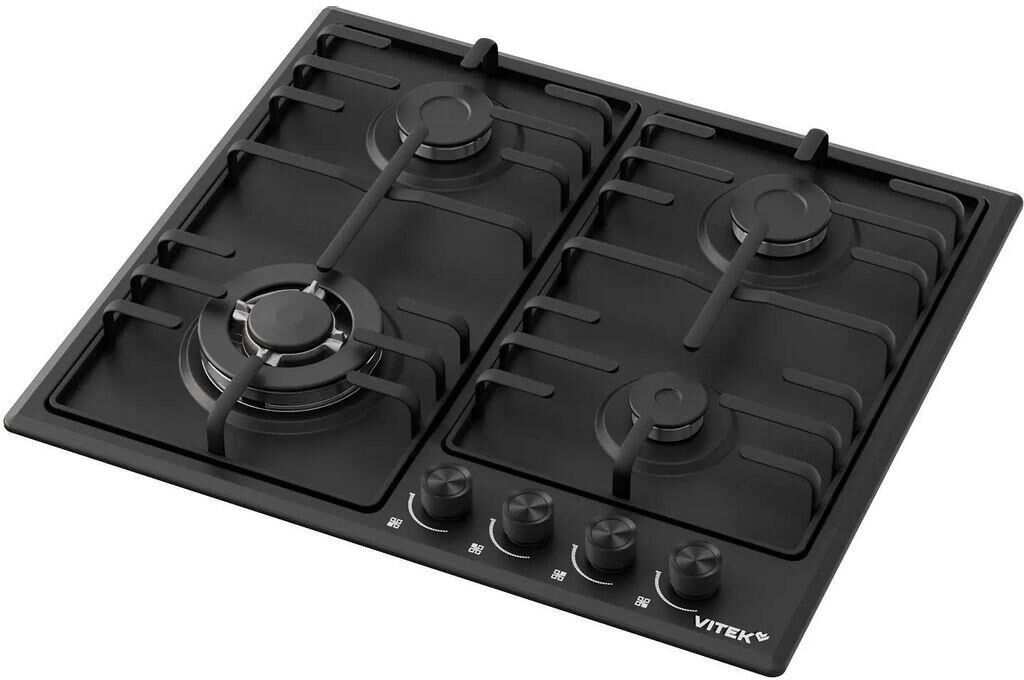 VITEK Газовая варочная панель VGH 6410W MBK, 4 конфорки, эмалированная сталь, черный