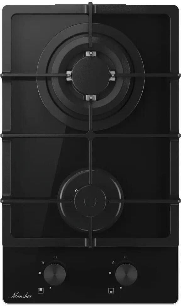 MONSHER Газовая варочная панель Hi-tech MGG 33 Noir, 2 конфорки, закаленное стекло, черный