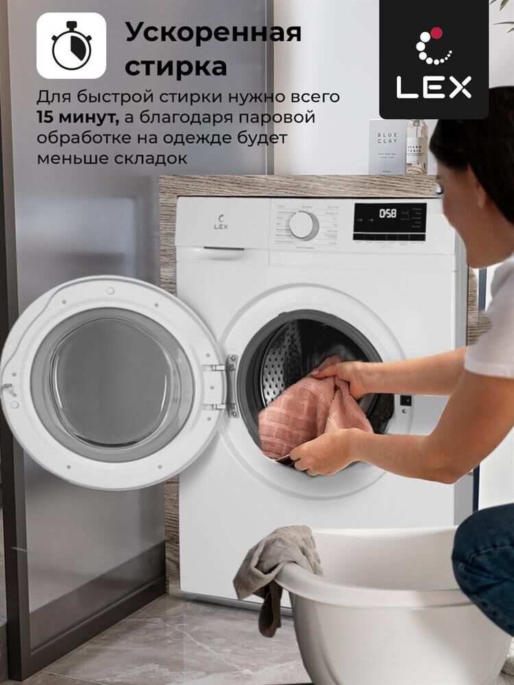LEX Стиральная машина узкая LWM06010BLIDsmall, с фронтальной загрузкой, с паром, 6кг, 1000об/мин, ин