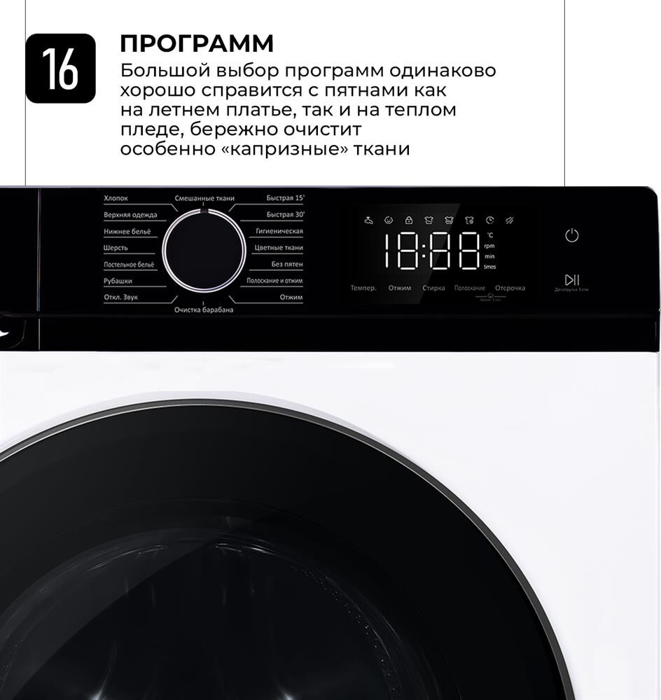 LEX Стиральная машина LWM10012WID класс: A+++ загр.фронтальная макс.:10кг белый инвертор