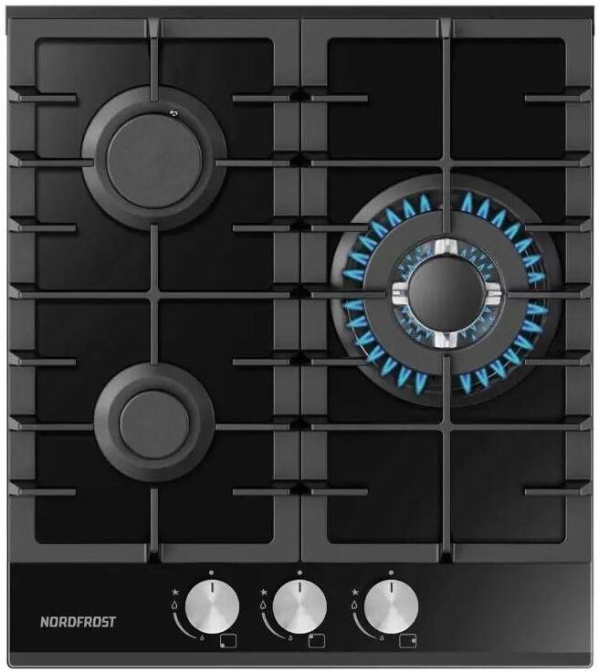 NORDFROST Газовая варочная панель HM 4532 B, 3 конфорки, закаленное стекло, черный