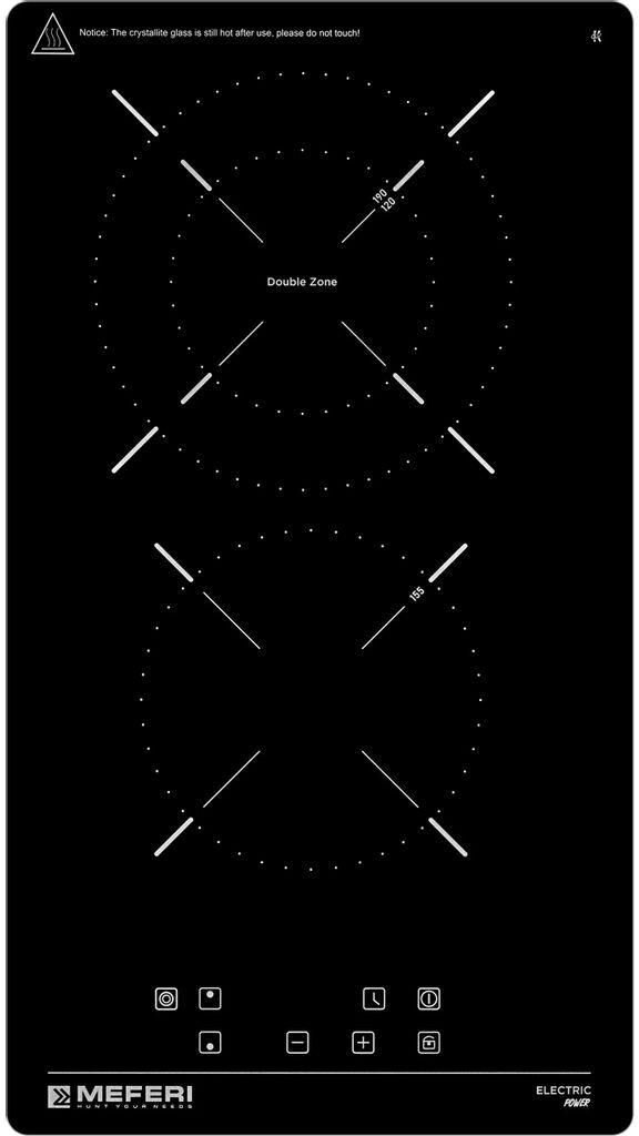 MEFERI Электрическая варочная поверхность Power MEH302BK, конфорок: 2 шт., стеклокерамика, независим