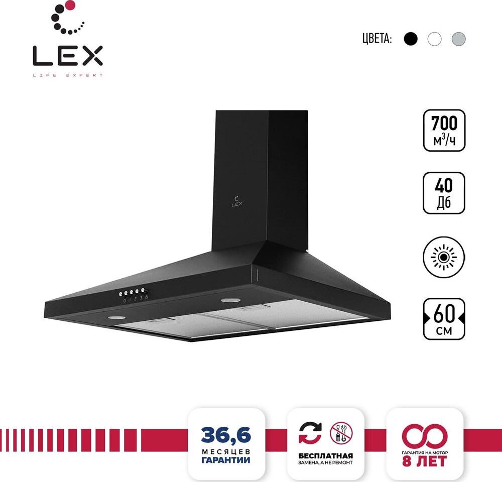 LEX Вытяжка каминная Mira G 600 BLACK черный управление: кнопочное (1 мотор)