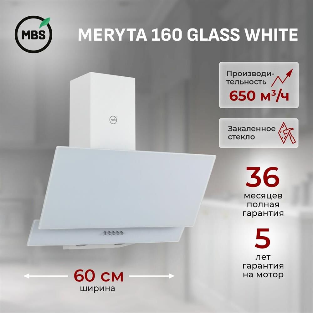 MBS Вытяжка каминная Meryta 160 Glass White, белый стекло, кнопочное управление