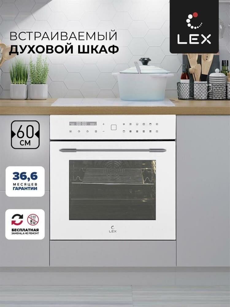 LEX Духовой шкаф электрический EDS 101 WH, 61л, 59.5 х 53 х 59.5 см, дверца с 3 стеклами, белый/нерж