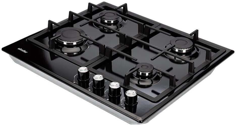 SIMFER Газовая варочная панель H60N40B416, 4 конфорки, закаленное стекло, черный