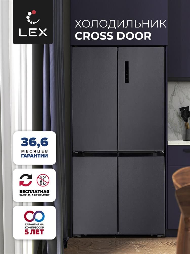 LEX Холодильник четырехкамерный LFD424StGIDBI French Door, инверторный серый