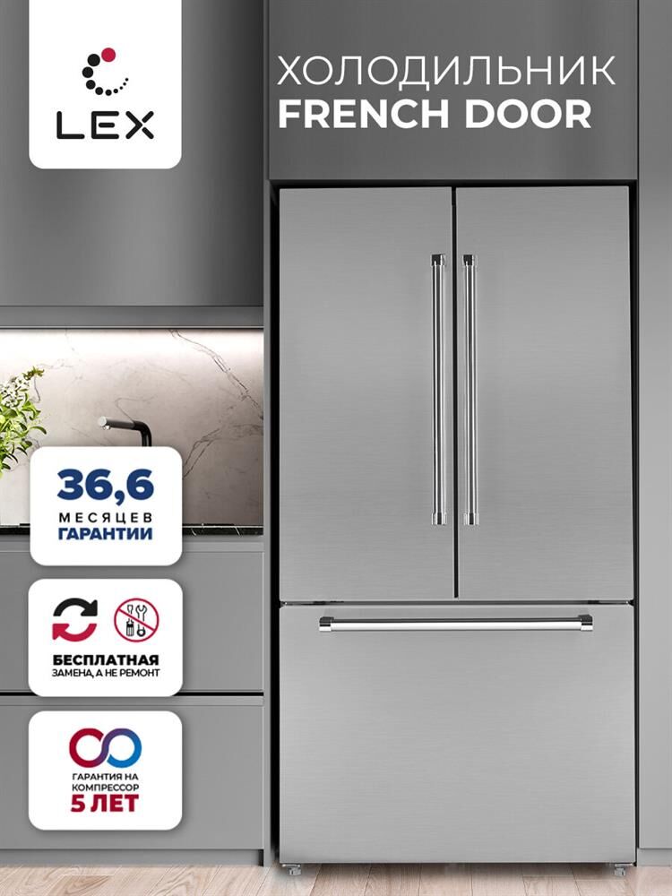 LEX Холодильник двухкамерный LFD595IxID French Door, инверторный нержавеющая сталь
