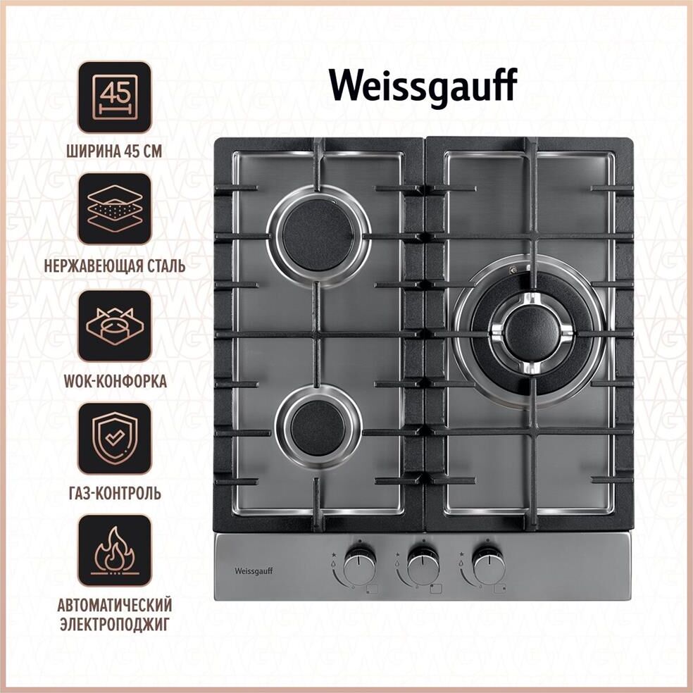 WEISSGAUFF Газовая варочная поверхность HGG 451 XFh нержавеющая сталь