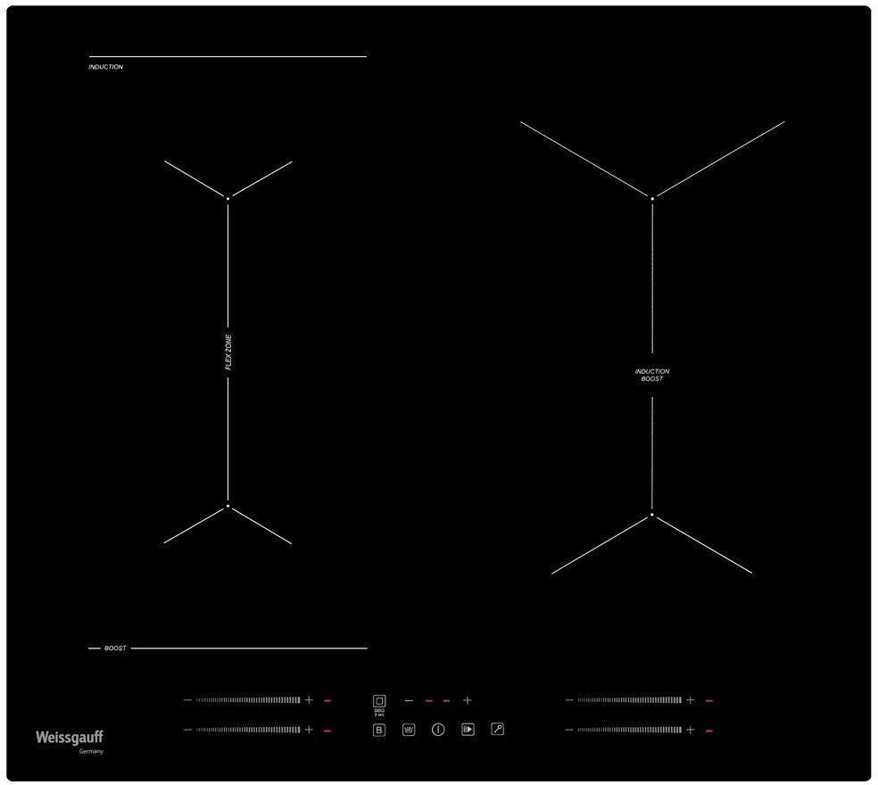 WEISSGAUFF Индукционная варочная поверхность HI 649 Dual Flex, конфорок: 4 шт., стеклокерамика, неза