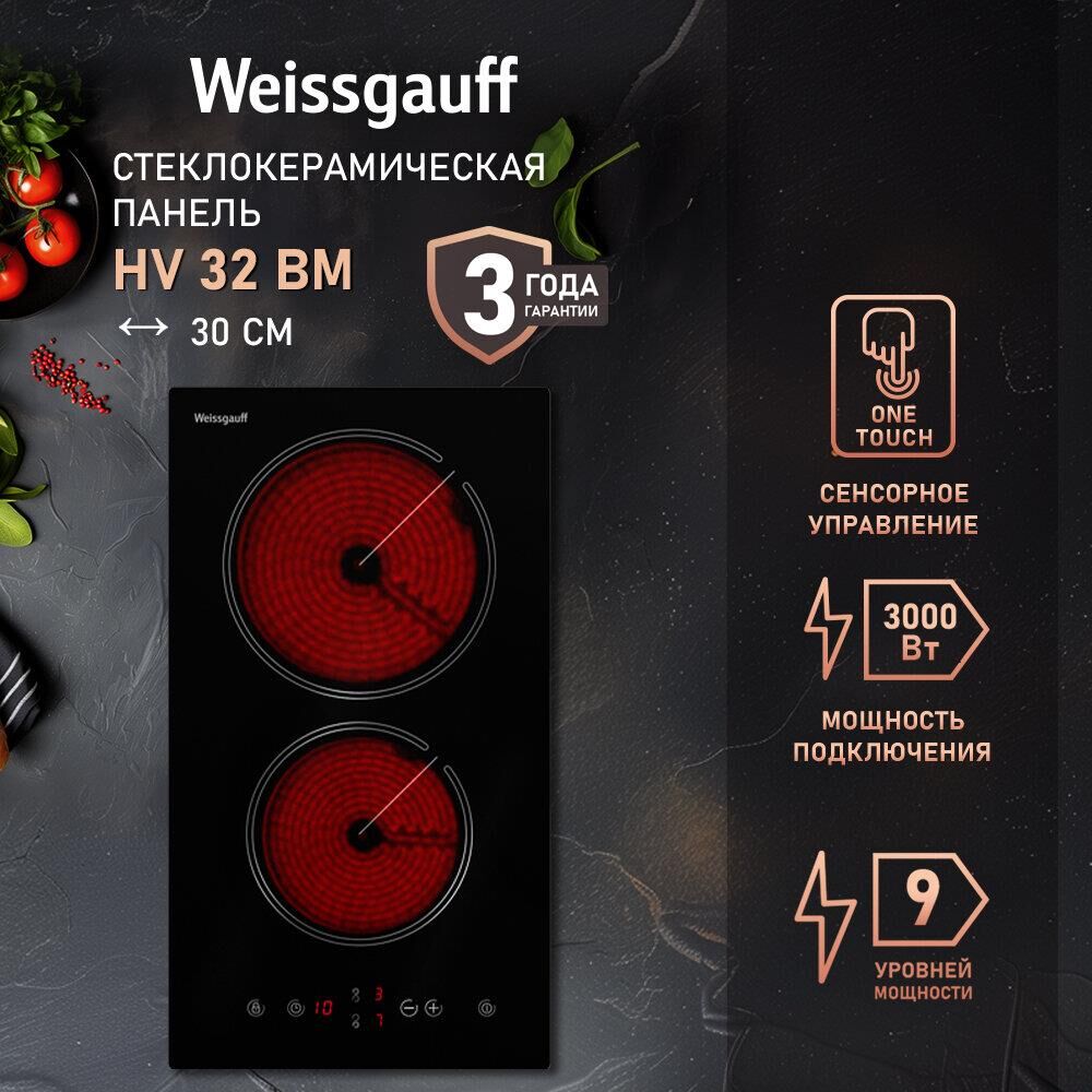 WEISSGAUFF Электрическая варочная поверхность HV 32 BM, конфорок: 2 шт., стеклокерамика, независимая