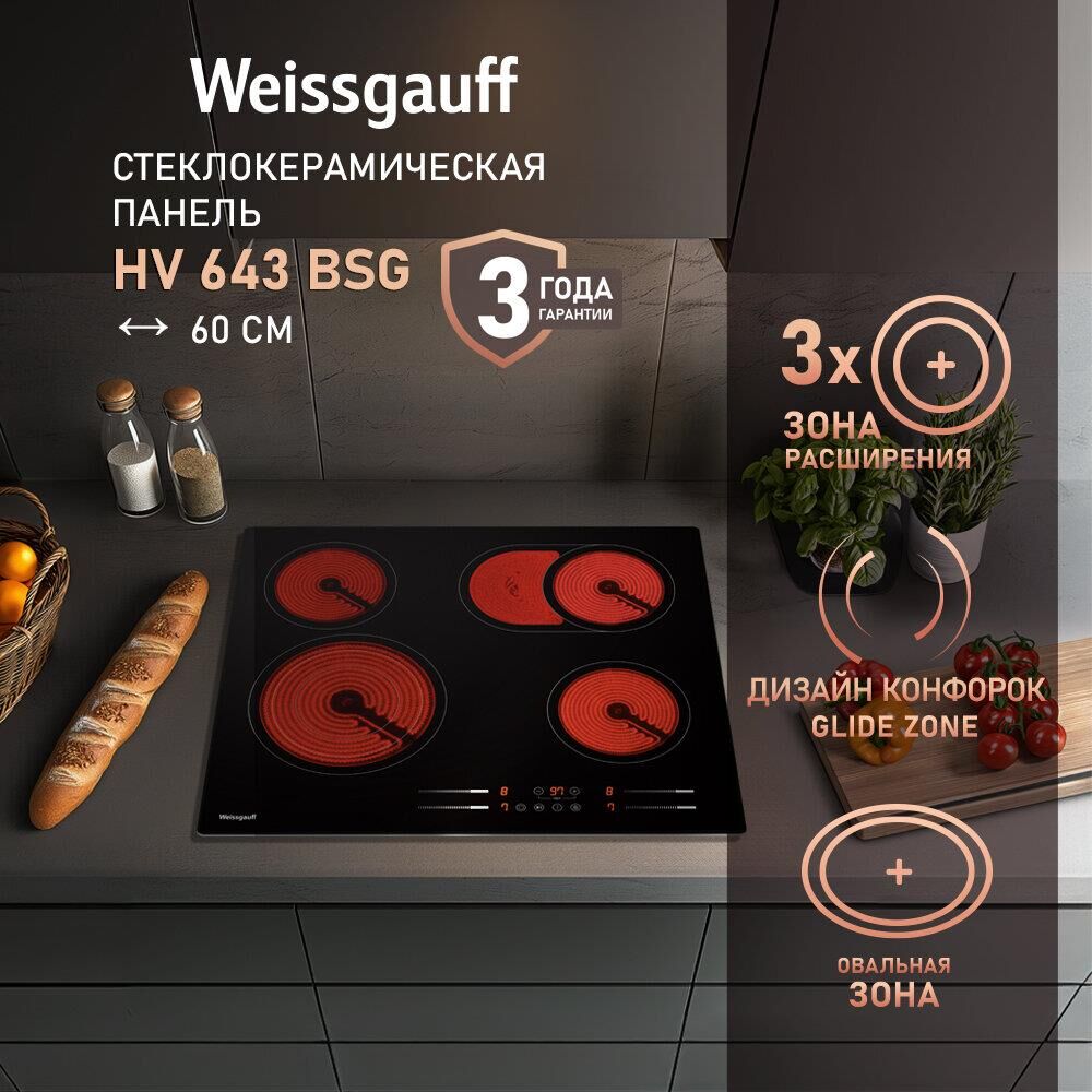 WEISSGAUFF Электрическая варочная поверхность HV 643 BSG, конфорок: 4 шт., стеклокерамика, независим