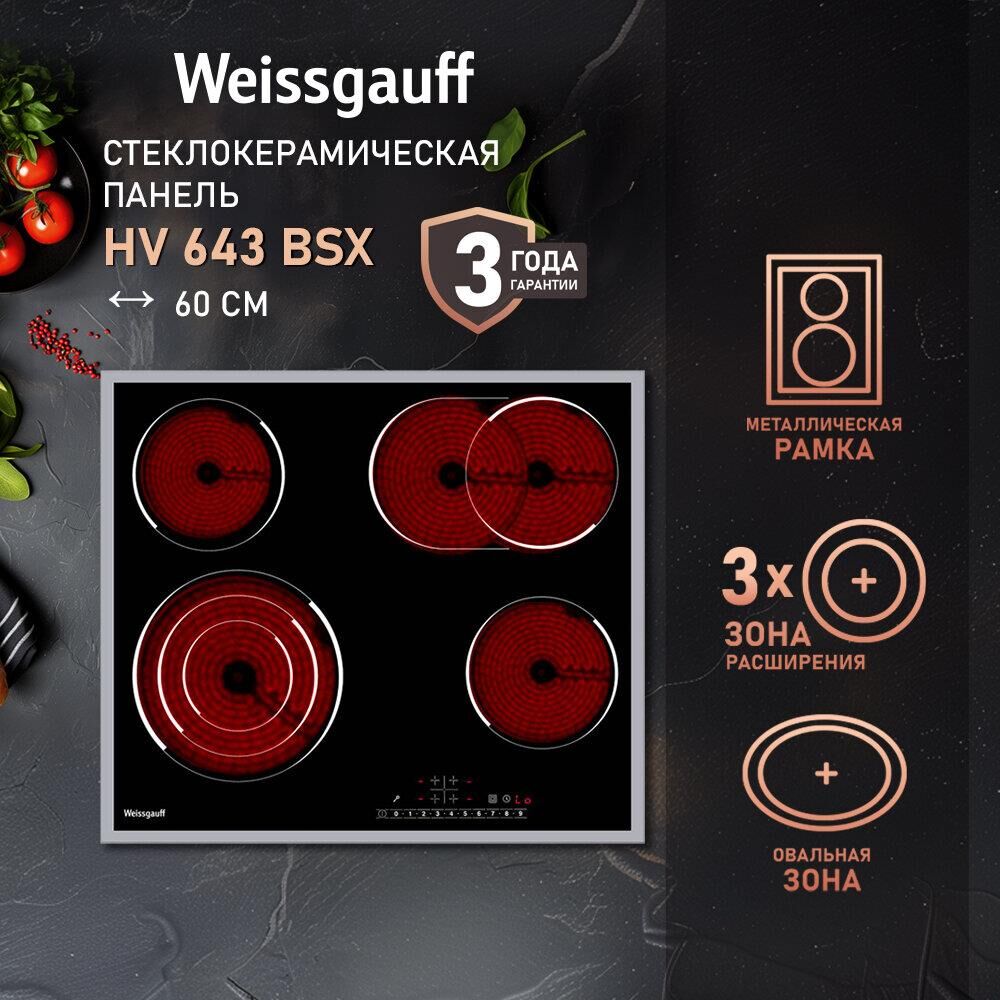 WEISSGAUFF Электрическая варочная поверхность HV 643 BSX, конфорок: 4 шт., стеклокерамика, независим