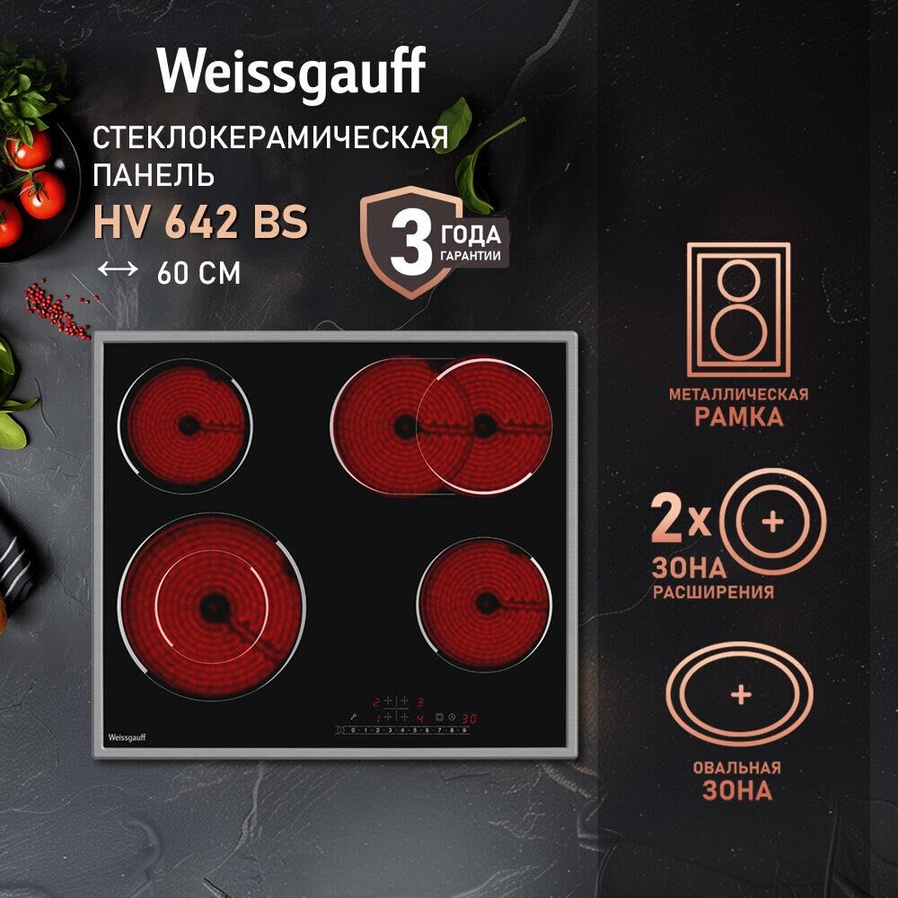 WEISSGAUFF Электрическая варочная поверхность HV 642 BS, конфорок: 4 шт., стеклокерамика, независима
