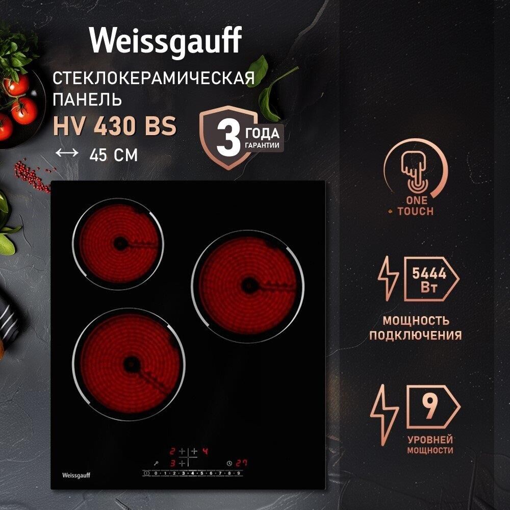 WEISSGAUFF Электрическая варочная поверхность HV 430 BA, конфорок: 3 шт., стеклокерамика, независима