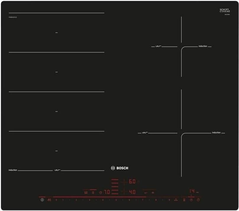BOSCH Индукционная варочная поверхность PXX695HC1E, конфорок: 4 шт., стеклокерамика, независимая, че