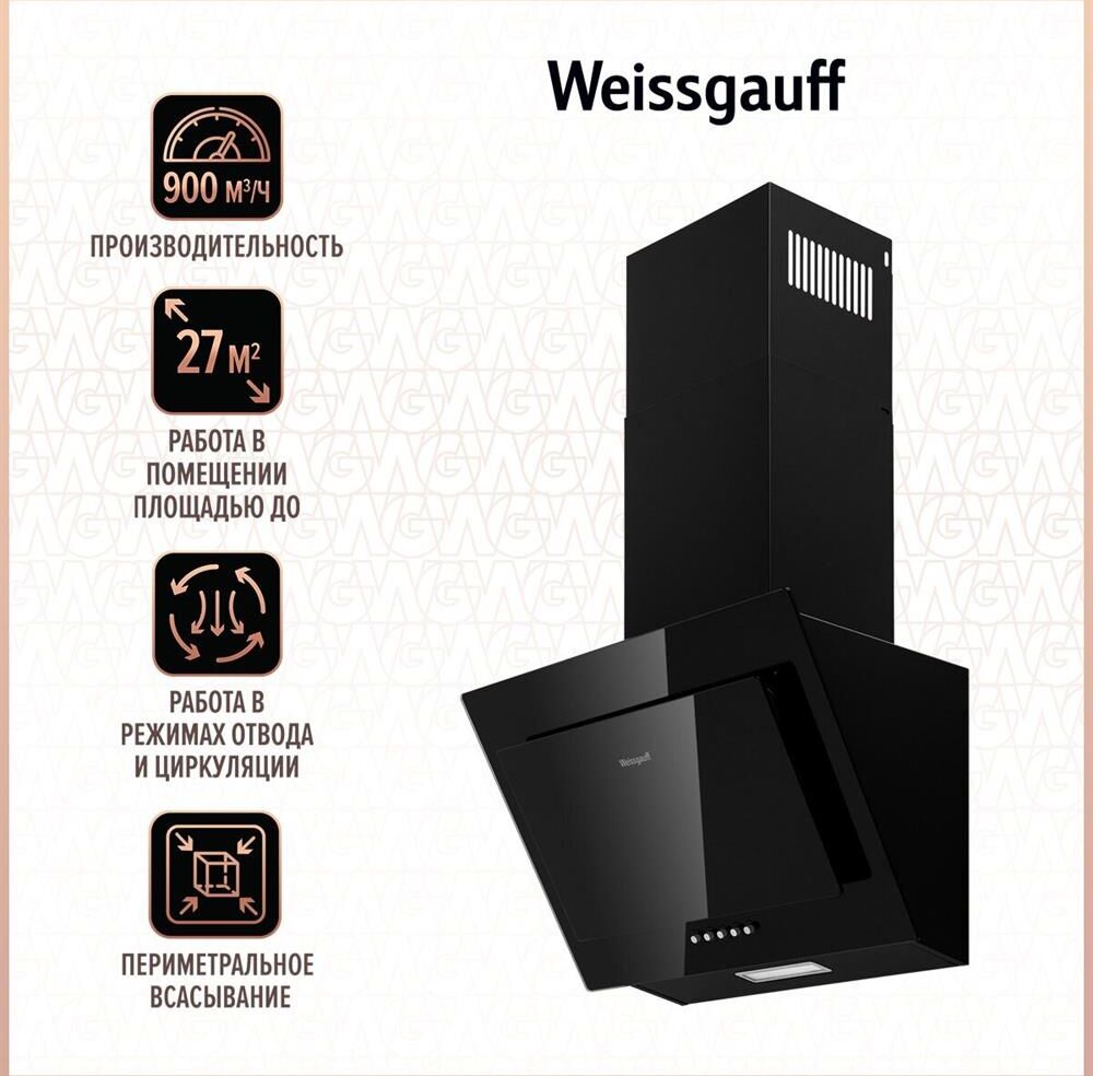 WEISSGAUFF Вытяжка каминная Zaurak 60 PB, черный, кнопочное управление [430906]