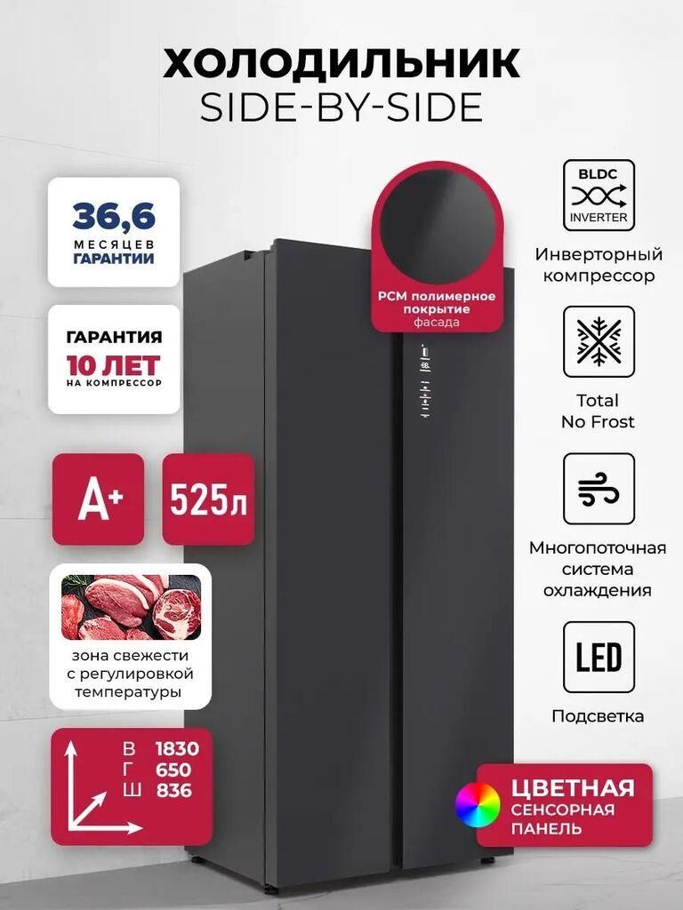 LEX Холодильник двухкамерный LSB525BLID Side by Side, черный