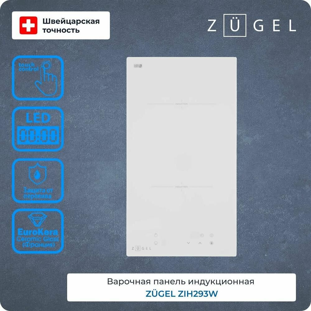 ZUGEL Индукционная варочная поверхность ZIH293W, конфорок: 2 шт., стеклокерамика, независимая, белый