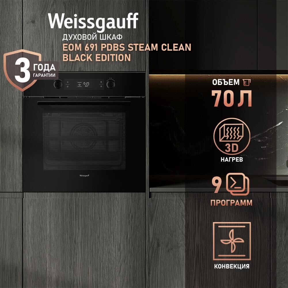 WEISSGAUFF Духовой шкаф Электрический EOM 691 PDBS Steam Clean черный