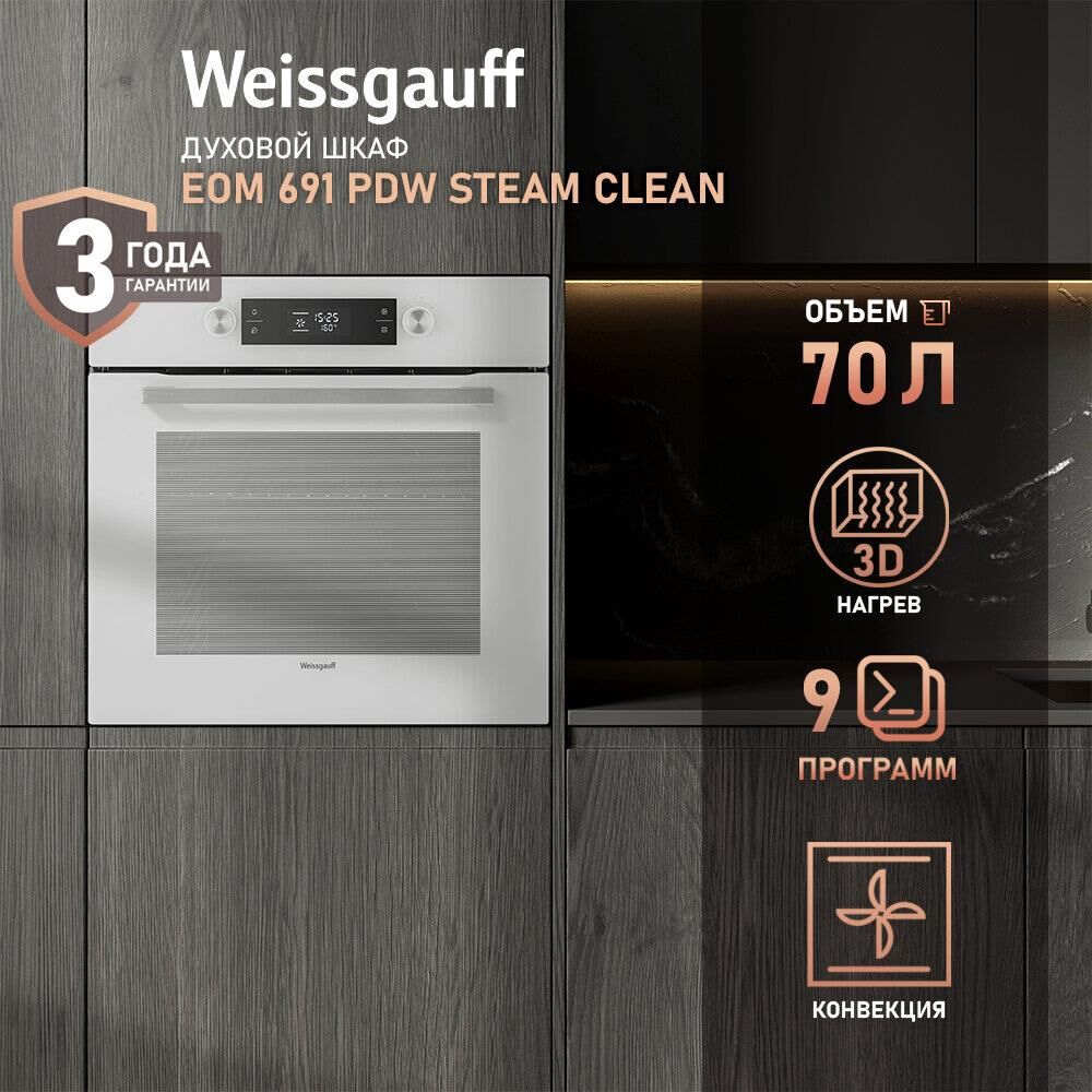 WEISSGAUFF Духовой шкаф Электрический EOM 691 PDW Steam Clean белый
