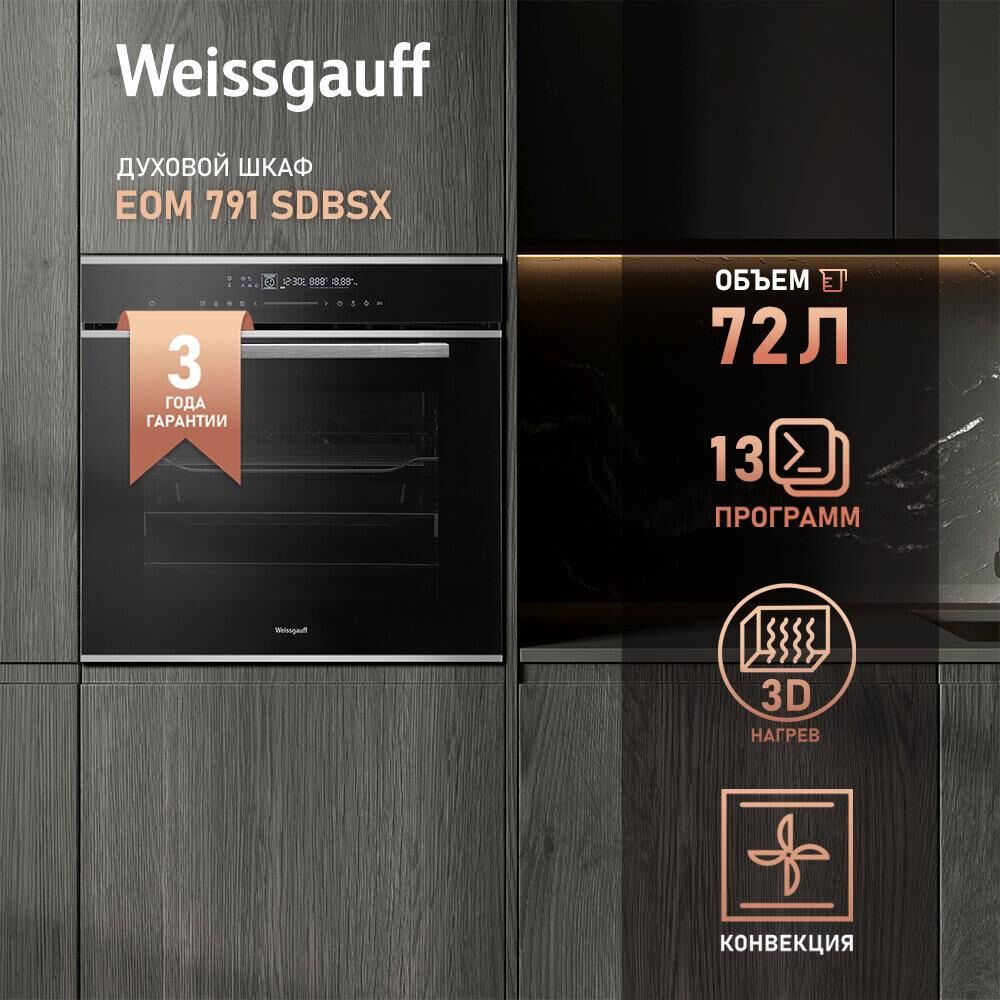 WEISSGAUFF Духовой шкаф Электрический EOM 791 SDBSX черный/нержавеющая сталь