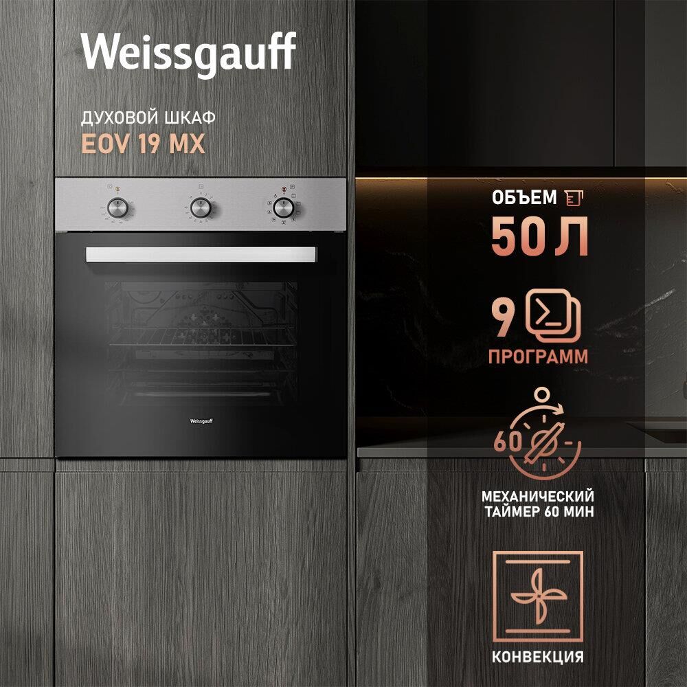 WEISSGAUFF Духовой шкаф Электрический EOV 19 MX нержавеющая сталь/черный