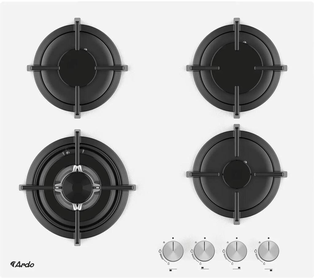 ARDO Газовая варочная панель GH63G1WFCW2, 4 конфорки, закаленное стекло, белый