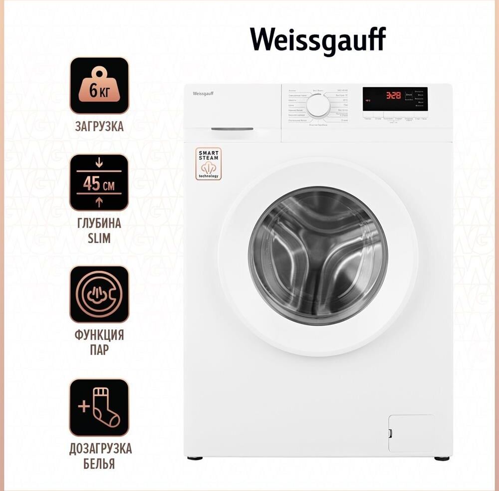 WEISSGAUFF Стиральная машина WM 46106 Steam класс: A+ загр.фронтальная макс.:6кг белый