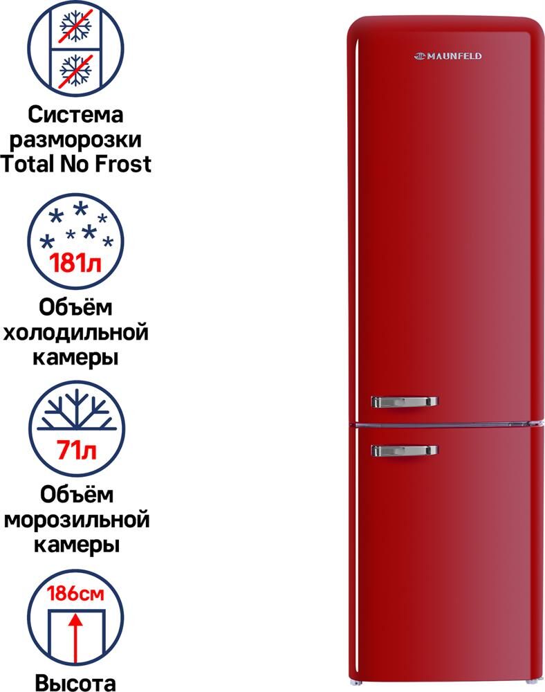 MAUNFELD Холодильник MFF186NFRR 2-хкамерн. красный