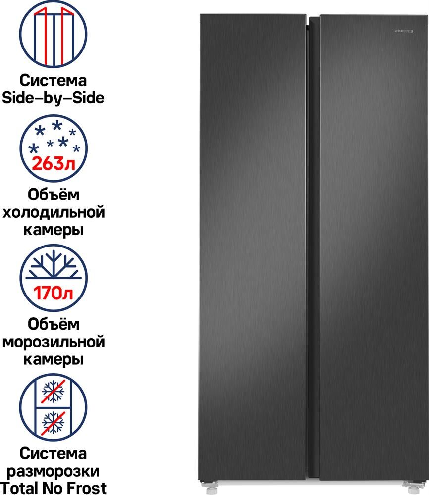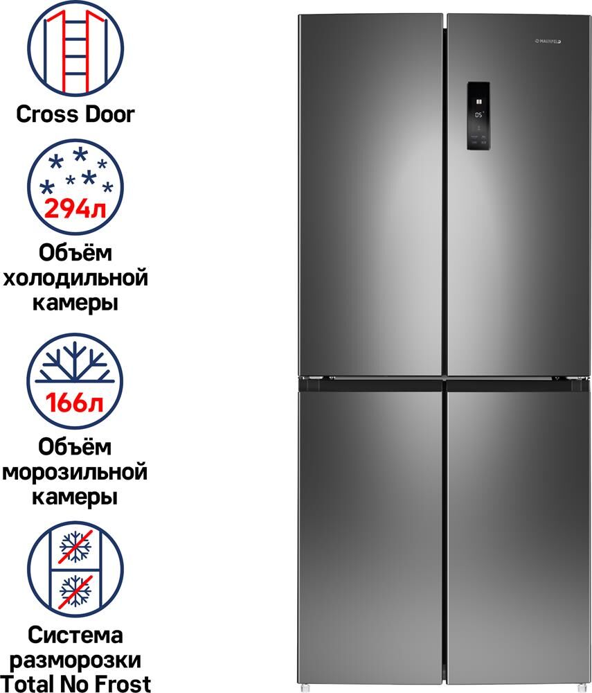 MAUNFELD Холодильник MFF180NFSE01 3-хкамерн. нержавеющая сталь инвертер