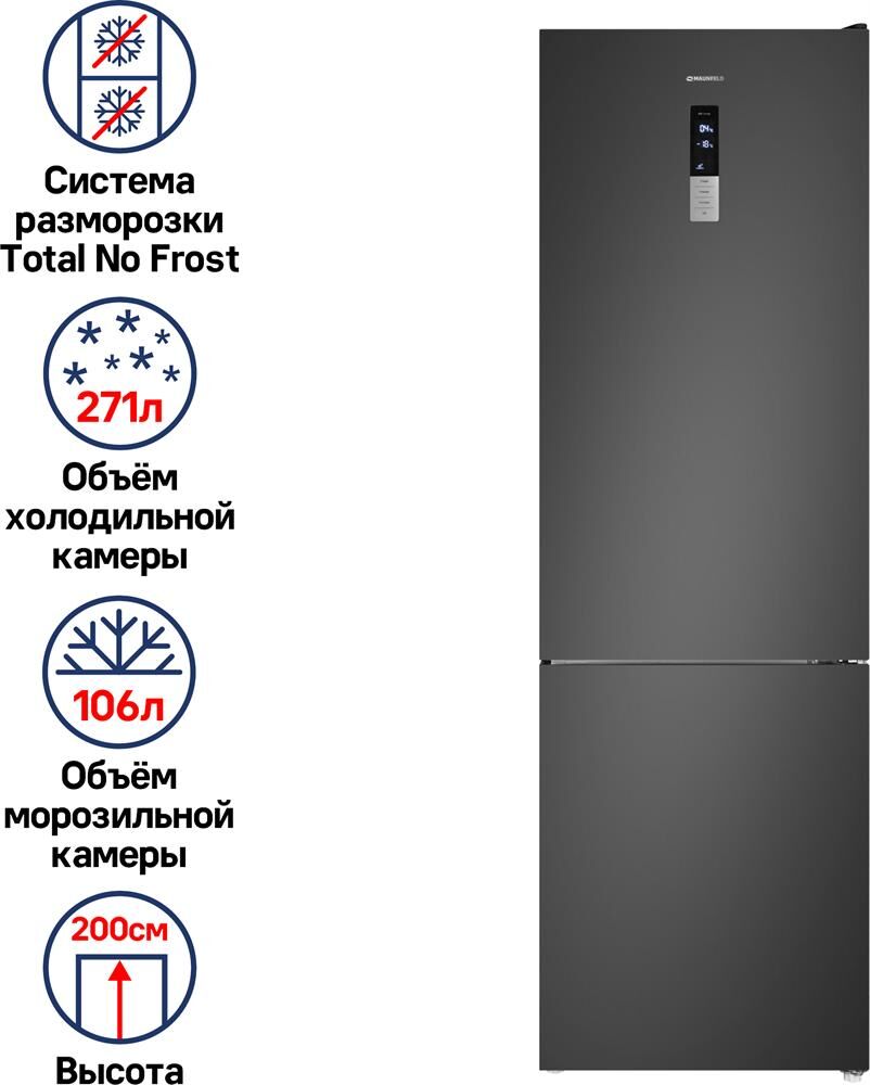 MAUNFELD Холодильник MFF1857NFSB 2-хкамерн. черный мат. инвертер