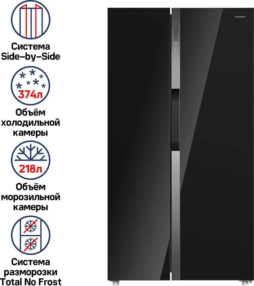 MAUNFELD Холодильник MFF181NFSB 3-хкамерн. черный глянц. инвертер