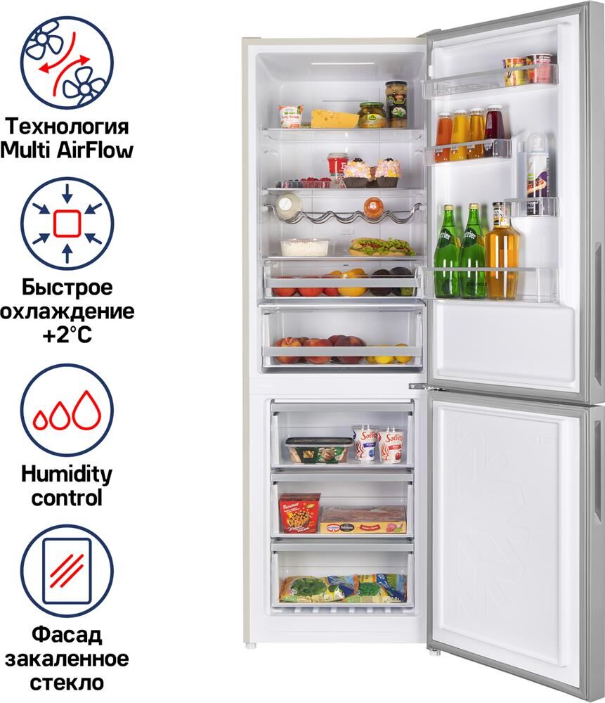 MAUNFELD Холодильник MFF185NFBG 2-хкамерн. бежевый инвертер