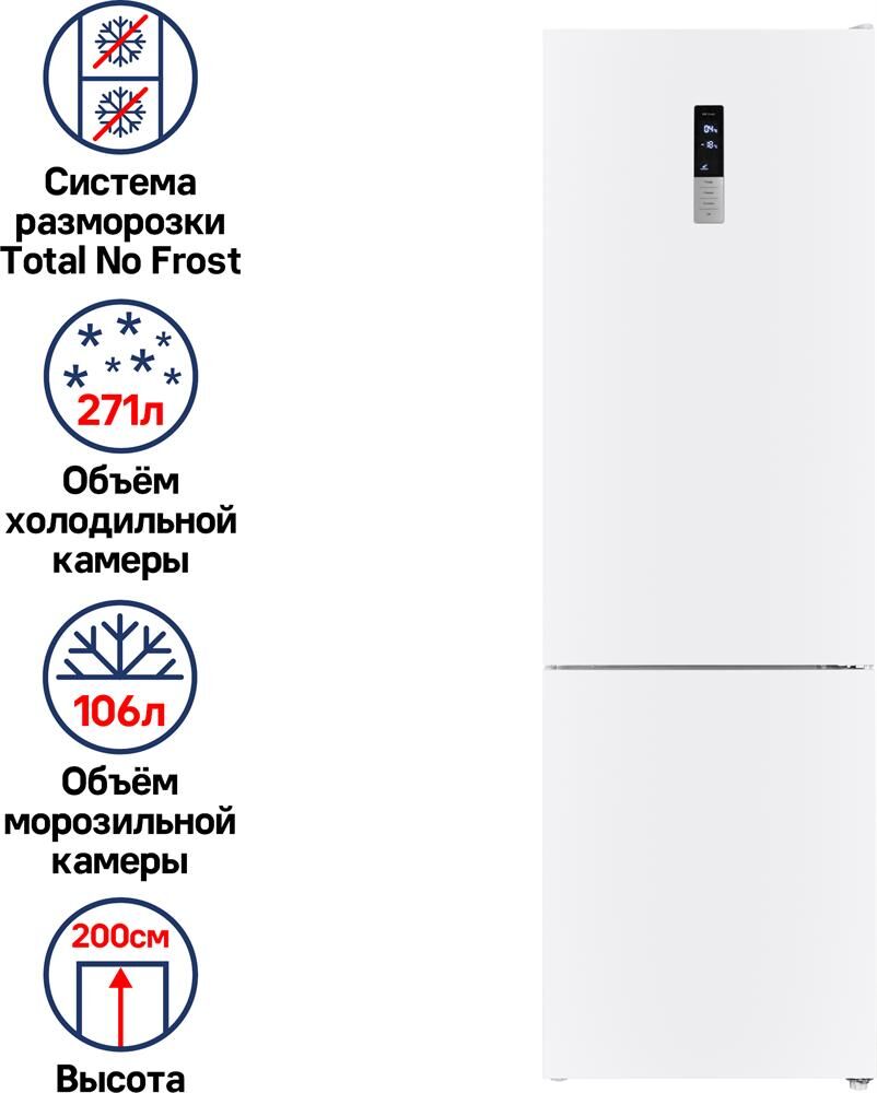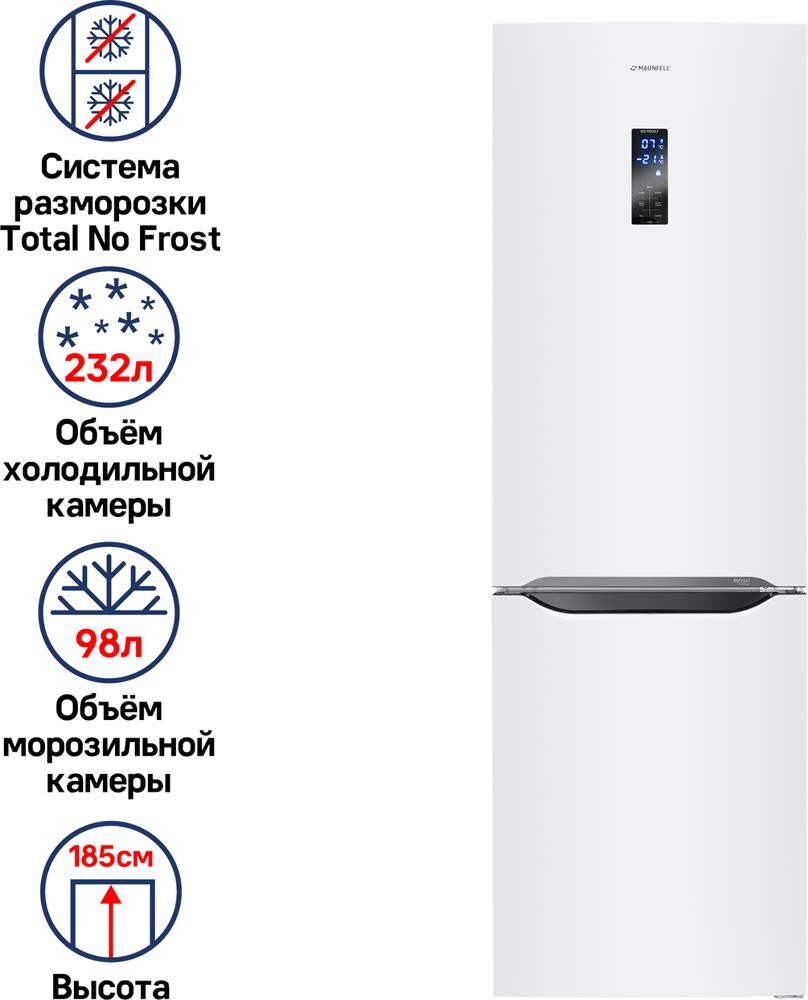 MAUNFELD Холодильник двухкамерный MFF187NFW10 Total No Frost, инверторный белый