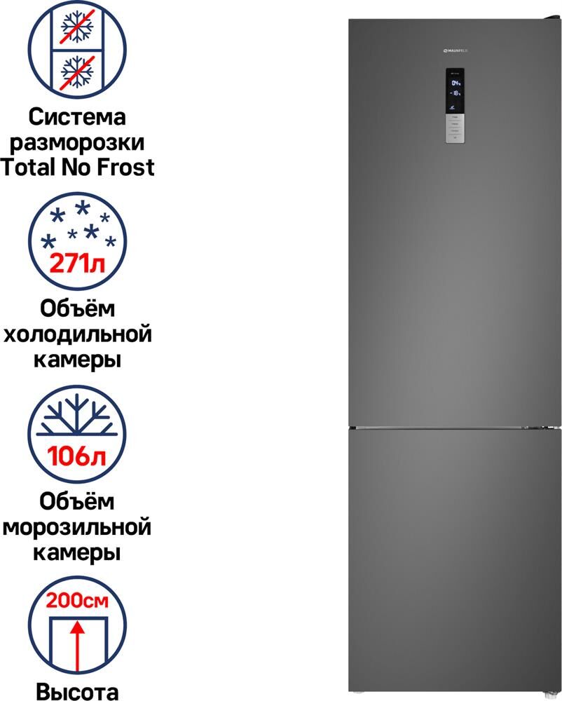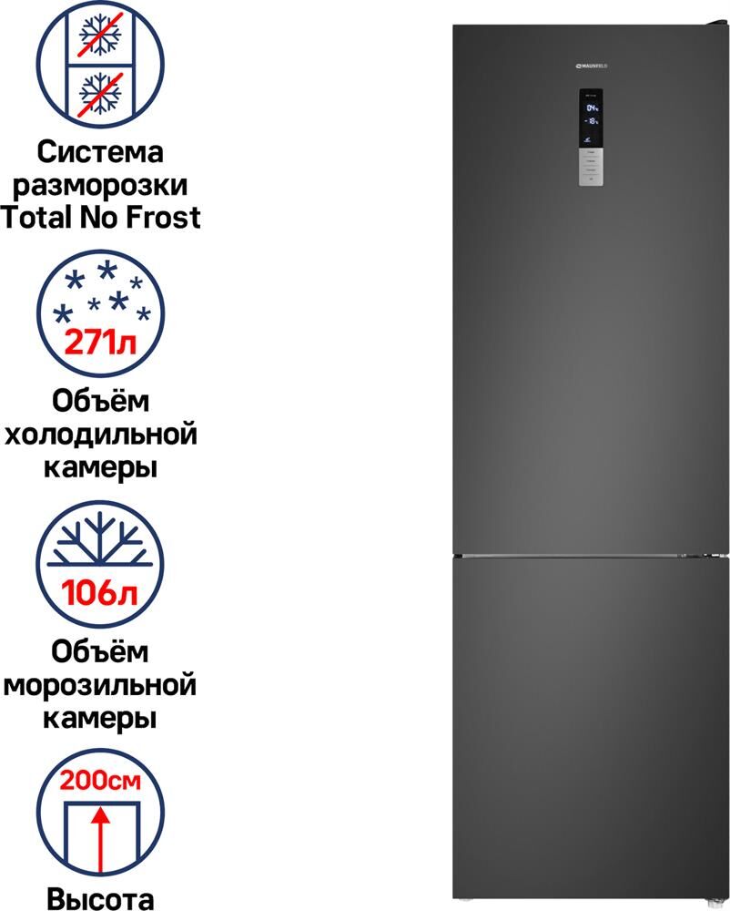 MAUNFELD Холодильник двухкамерный MFF200NFSBE Total No Frost, черная сталь